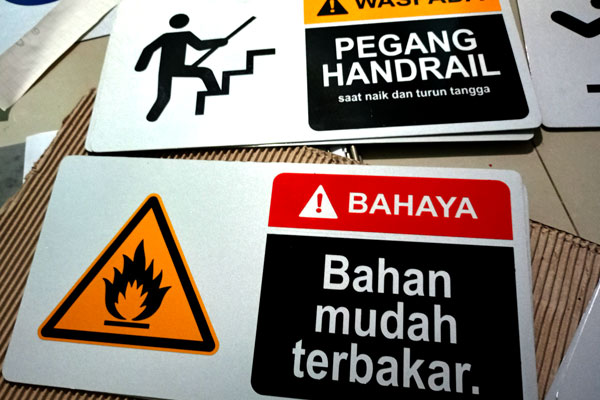 Diproduksi mengikuti regulasi keselamatan kerja Indonesia dan standar internasional untuk memastikan rambu mudah dipahami dan legal digunakan di berbagai sektor industri.