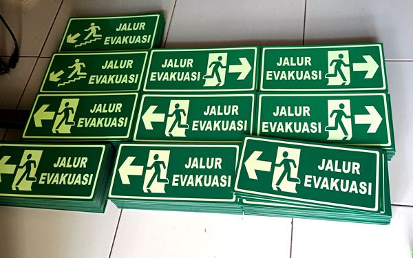 Gunakan rambu reflektif untuk area luar ruangan, jalur evakuasi, area proyek, atau tempat kerja malam hari.
